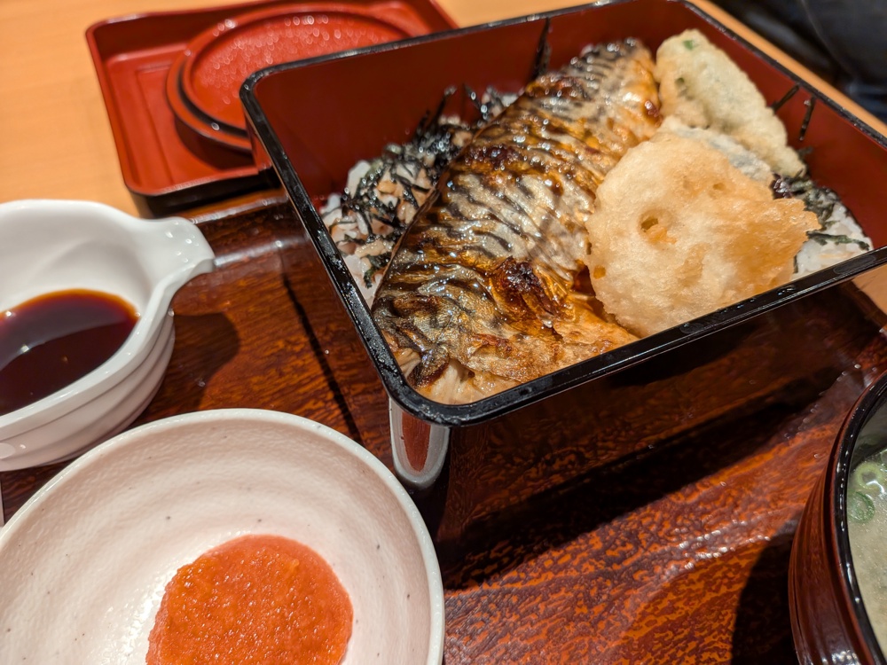 やよい軒の、焼サバと天ぷらのまぶし定食が美味しかった。